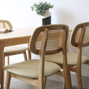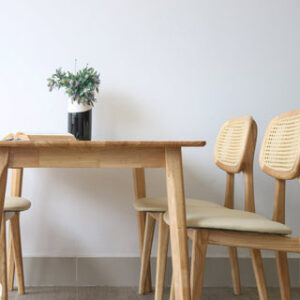 - Ghế: Gỗ cao su & mây tre