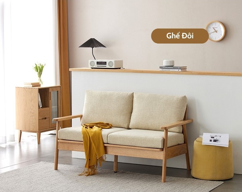 | Chất liệu | Gỗ sồi tự nhiên, đệm mút D40, tựa lưng bông gòn |